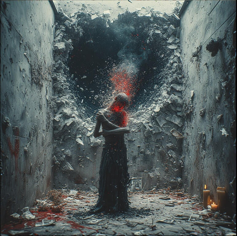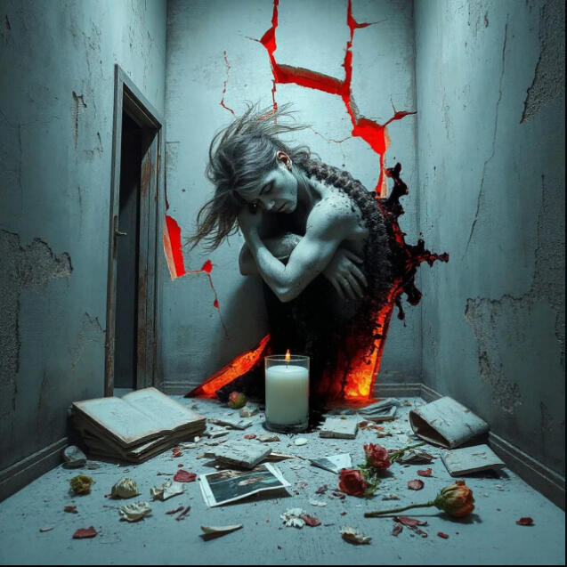 “Like a haunted cracked dam —pressure screaming through the walls while love curls itself around what’s already breaking.”InsightPoetic snapshot
