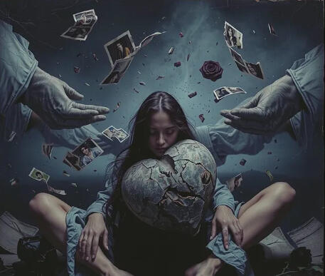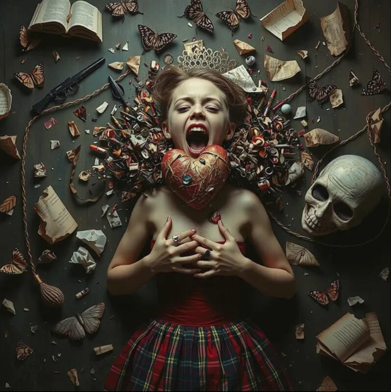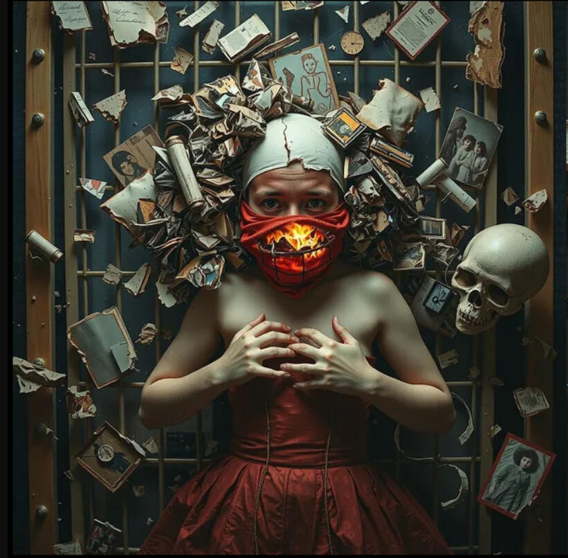 “Like a cracked porcelain mask laid over torn diary pages—both once mine, now reshaped by hands that refused to listen.”Insight