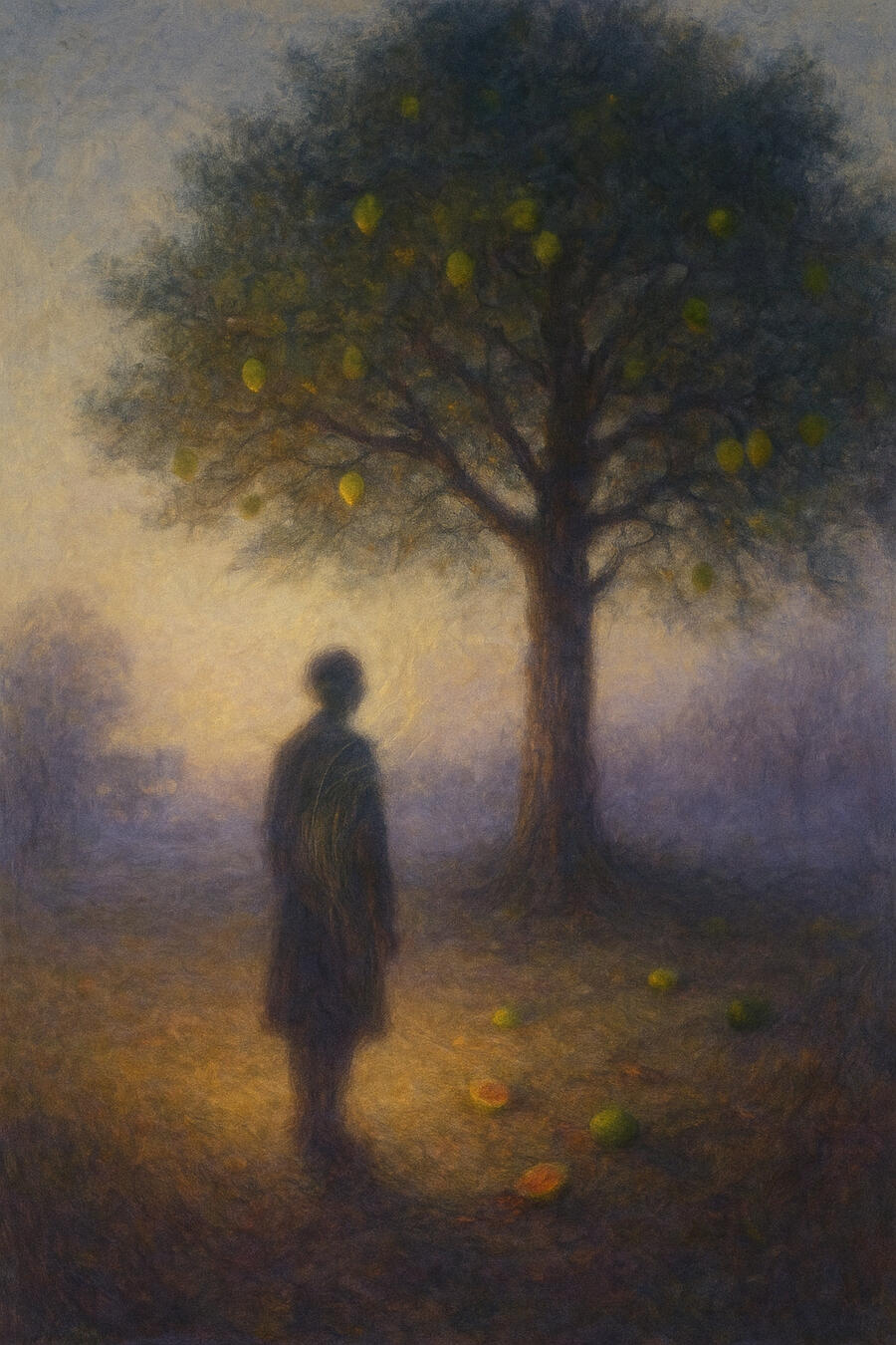 Its leaves move like nothing is wrong while your whole life gathers at its roots.Inside: tired lamplight, unfinished sentences, the slow grammar of almost-goodbye.