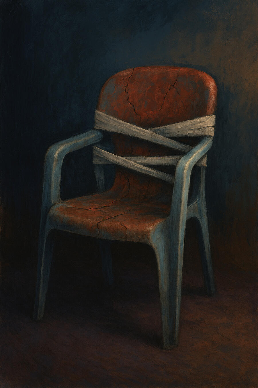 “Like sitting in a fractured chair that still holds your weight—barely—while your breath strains against invisible bindings.”Poetic snapshot