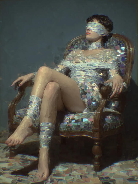 A cold hum hangs in the room like a warning. The mask doesn’t break all at once—it fractures inward, veins of rusted red spreading through porcelain skin. Behind it, eyes flicker with defiance even as silence presses in. Pages drift, rewritten in someone else’s hand, the ink unfamiliar, the meaning stolen. You scream—but only underwater, where sound warps and drowns.Narrating Identity Questionnaire (NIQ)