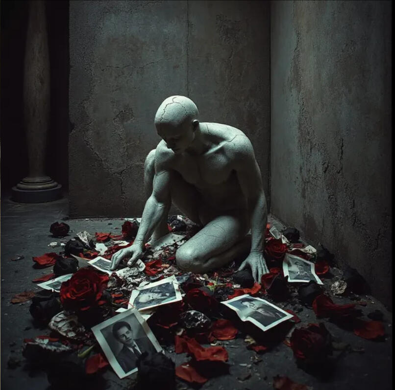 “Like a cracked porcelain mask laid over torn diary pages—both once mine, now reshaped by hands that refused to listen.”Insight